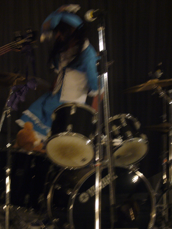 力いっぱいドラムを演奏するPanasonic。